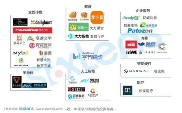 以字节跳动为例。根据Sixlens统计的数据,在截止2021年6月的一年里,字节跳动相关投资并购事件共有65起,主要开始覆盖内容产业,占比高达32.3%。包括自媒体运营、数字版权、MCN机构等和抖音、今日头条内容生态联系紧密的内容产业上下游企业,是字节投资并购的重点。