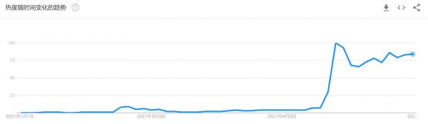 根据谷歌搜索的数据统计,去年“Metaverse”的全球搜索热度的变化有两处值得关注。
