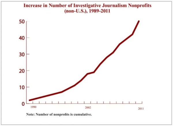 除了美国,在全球也有越来越多非营利媒体进入大众视野。国际媒体援助中心(Center for International Media Assistance, CIMA)于2013年发布的一份报告显示,专注于调查报道的非营利媒体的数量在世界范围内逐步增长。虽然欧美依然占据了主流,但南美和亚非等地也开始了自己的实践[5]。