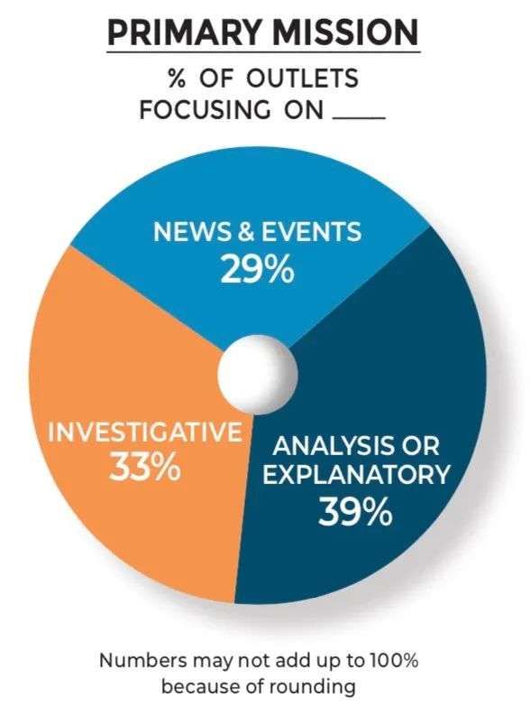 正如INN的报告所示,大部分的非营利媒体不会将主要的精力放在突发性报道之类的短小新闻播报,因为在这方面,商业媒体为了第一时间吸引读者可以做得更好。