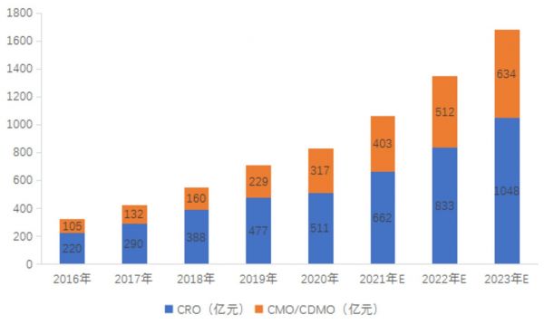 图1:2016-2023年中国医药研发和生产外包服务市场规模 来源:Frost & Sullivan