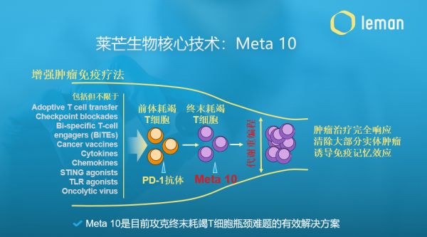 基于此,莱芒生物已经开发了两款代表性候选药物,包括能提升免疫细胞治疗、免疫检验点抑制剂、免疫激动剂等多种免疫疗法的生物大分子药物,以及面向实体瘤的、可逆转免疫细胞耗竭并诱导其干性免疫记忆的新型代谢增强型肿瘤免疫疗法。据悉,该疗法通过增强肿瘤特异性终末耗竭T细胞的氧化磷酸化代谢实现再次激活终末耗竭T细胞,可显著提高多种肿瘤免疫疗法的响应率和疗效。