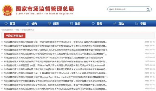 2022腾讯“开年不利”(来自国家市场监督管理总局网站)