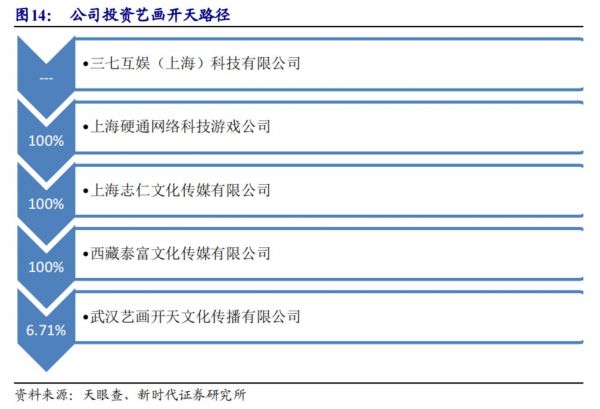 除了这种上市企业可直接退出并获得收益外,三七互娱投资的其他项目也蕴藏巨大潜力。以艺画开天举例,根据天眼查数据,三七互娱目前间接持有艺画开天6.71%股份。