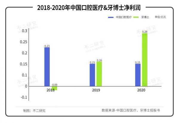 牙博士则是三者中唯一实现净利润不断扩大的企业。据其招股书显示,2018-2020年,牙博士净利润为-0.09亿元,0.16亿元,0.28亿元,2021年上半年则实现净利润0.59亿元,在2019年扭亏后,净利润加速上涨。