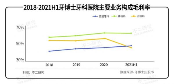 据牙博士招股书显示,2020年普通牙科、种植科、正畸科的毛利率分别为48.4%,61.5%,54.3%。