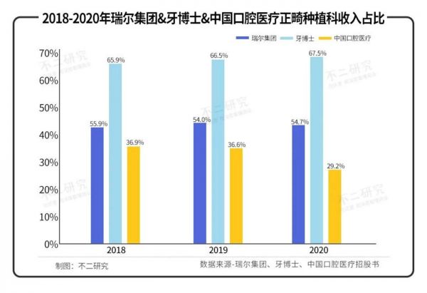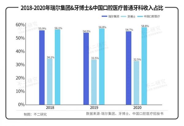 中国口腔医疗和瑞尔集团更侧重普通牙科,牙博士则更侧重正畸和种植科。