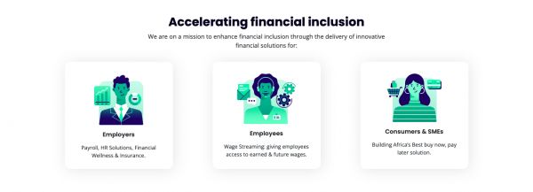 自2018年成立以来,「Finclusion Group」建立并完善直接面向消费者的信贷产品,以缩小其运营所在国的信贷缺口。于此同时,这家初创公司通过雇主合作关系为员工的薪酬福利提供解决方案。该公司通过其产品“SmartAdvance” 提供工资贷款和预付,员工可以凭借雇佣关系申请贷款并直接通过工资抵扣的方式进行还款。