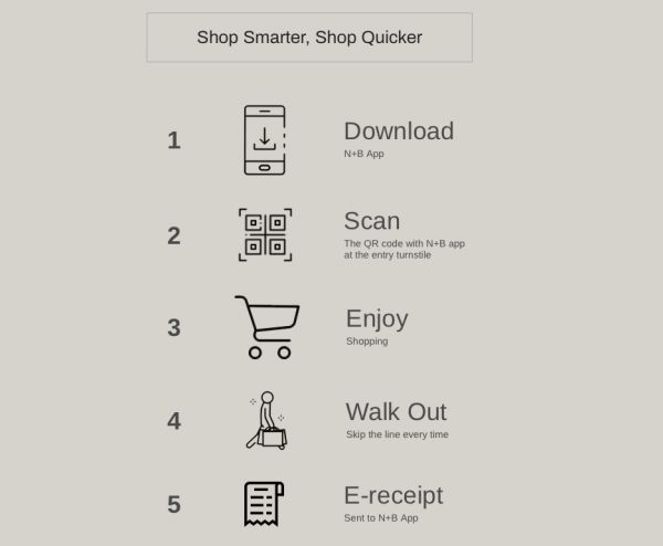 创始人Jamie Hemmings在采访中介绍,「Nourish + Bloom Market」用户只需下载同名应用程序并输入支付信息,即可通过扫描商店旋转栅门处的二维码创建数字购物车。商店内配备了30个摄像头和多个货架重量监视器来跟踪用户的购物情况。当用户离开商店时,应用程序将在后台自动扣款并发送收据。