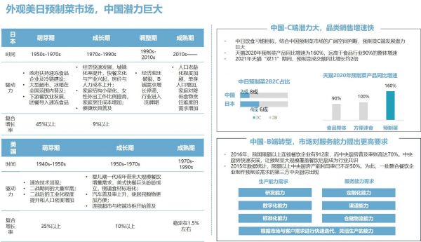 比如日本预制菜在上世纪70 年代末80年代初得到高速发展,每年以20%以上的速度递增。目前,日本预制菜的渗透率已经达到60%以上。