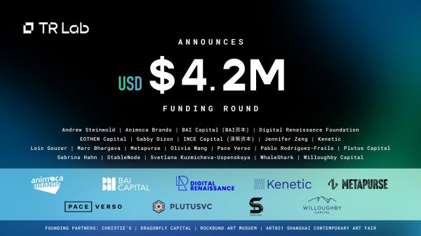 TRLab由早有蜻蜓数字资本(Dragonfly Capital)孵化,获Artsy、上海外滩美术馆、ART021上海廿一当代艺术博览会创始人的支持。在最新一轮的融资之后,这家于 2021年5月成立、持续稳步发展的初创公司已获得总计620万美元的投资。