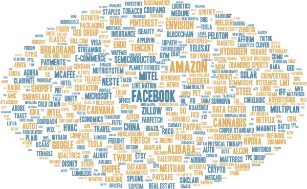 2021年,美国投资者2021年十大热词是Facebook(后改名为Meta Platforms)、亚马逊(Amazon)、大麻(Cannabis)、阿里巴巴(Alibaba)、Mitel、Envision、Carvana、谷歌(Google)、Broadband、Neste。电商巨头亚马逊(Amazon)与其他电商公司样受惠于在疫情下全球各地的封锁措施,但随着下半年各国逐步解封,市场担忧消费者会重回实体店消费,且需要面对新的供应链危机。另外,阿里巴巴(Alibaba)同样受到美国投资者的关注,与欧洲投资者的搜索高峰时间节点一致,均出现在第一季度,这说明海外投资者十分关注中国政府对互联网公司的新监管政策。