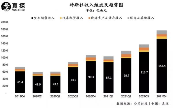 具体来看,营收方面,特斯拉Q4实现的总营收为177.19亿美元,其中整车销售收入为153.4亿美元,占比86.6%,碳积分收入下降至3.14亿美元;全年特斯拉总营收为538.23亿美元,同比增长71%。
