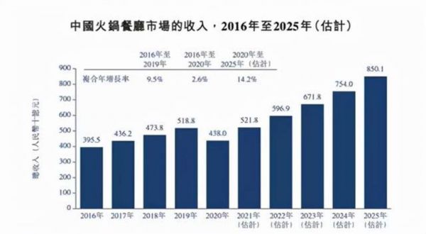 从整个行业来看,火锅餐厅的收入由2016年的人民币3.96万亿元增至2020年的人民币4.38万亿元,同时预计2025年疫情好转,市场复苏,将达到人民币8.5万亿元,复合年增长率约为14.2%。