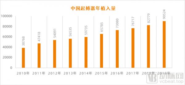 中国起搏器年植入量 数据来源:《中国心血管健康与疾病报告2020》