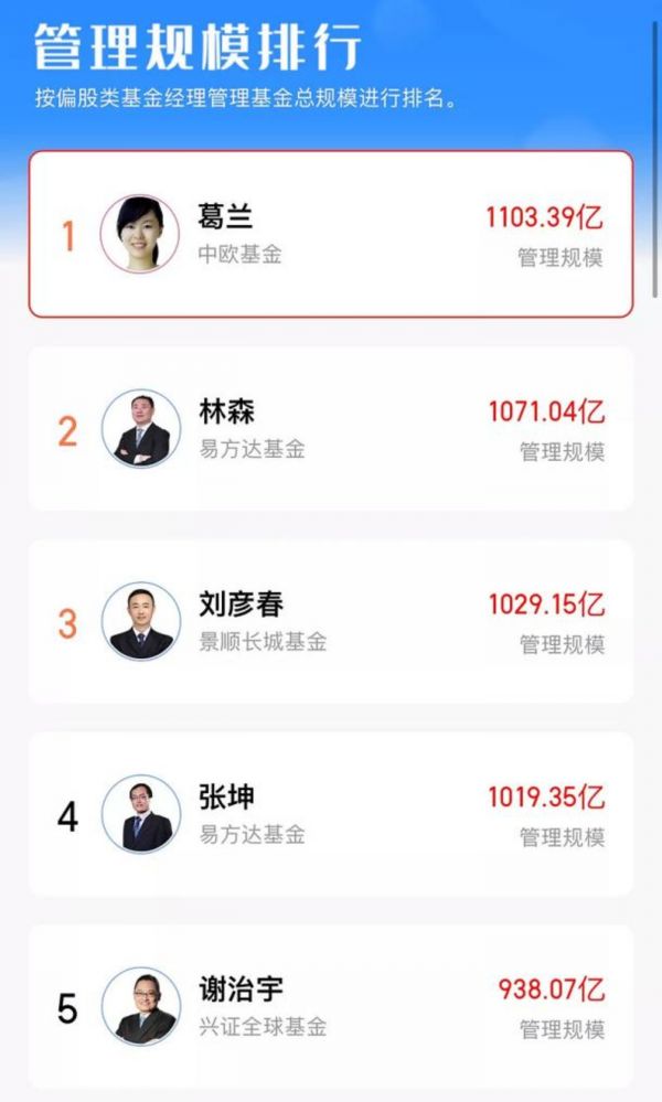 眼下,被誉为“医药女神”的葛兰管理的基金规模高达1103.39亿元,反超出圈的张坤等劲敌,一跃成为公募基金“一姐”。