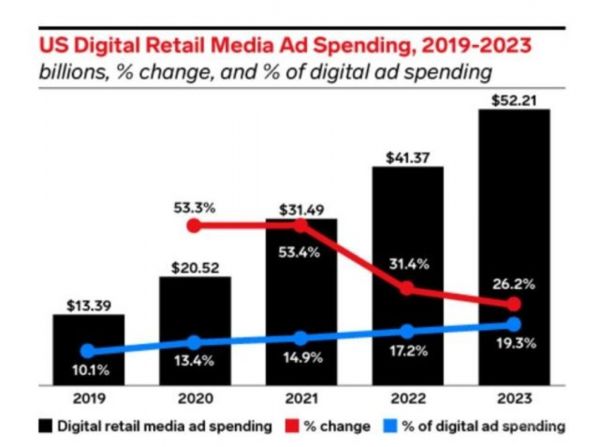 2月3日,亚马逊发布2021年第四季度和全年财报,首次公布了基于亚马逊旗下平台的广告收入。该季度亚马逊广告服务同比增长32%,达97亿美元,在美国市场是仅次于Facebook的326亿美元和谷歌的612亿美元的第三大广告平台,主要来自于站内搜索广告。此外,eMarketer预计2021年美国数字零售媒体广告支出将高达53.4%,占数字广告市场的14.9%。而美国整个数字广告市场预计会有38.3%的增长,零售广告增速超过整个广告市场。其中,占据零售媒体广告市场77.7%份额的亚马逊是主要推动力。帮助用户更好地购物,已经是一门不可忽视的生意。在这方面,字节跳动的潜力或许更惊人。