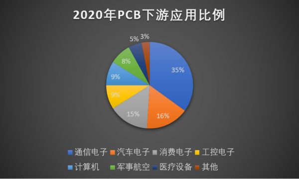 PCB下游需求是极度广泛的,但主要在于三方面, 通信电子、汽车电子、消费电子 ,共计占到约三分之二的份额, 直接决定了 PCB 行业的景气度 。