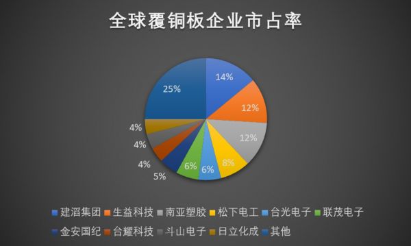 除了下游,我们知道,PCB上游以覆铜板为主,而覆铜板的集中度较高,全球前十名厂商的合计市占率约75%,所以PCB易受到上下游挤压,关注上游原材料价格的变化自然成为重点之一。