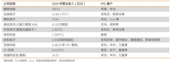 我国的FPC企业在国际上也逐渐掌握了话语权,其中鹏鼎控股位列第一梯队,主要供应苹果与华为,其他厂商例如弘信电子、景旺电子、崇达技术等也在陆续承接国外产能,继续做大做强。