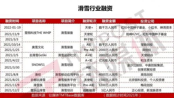 纵览所有一级市场赛道会发现,和投资蒙钛奇(ID:tzmengtaiqi)之前所发布过的2022医疗投资持续火爆,钱都砸在了哪里?、2022开年已疯,爆火的硬科技已然开“卷”文章来看,冰雪赛道并没有呈现出火爆状态。