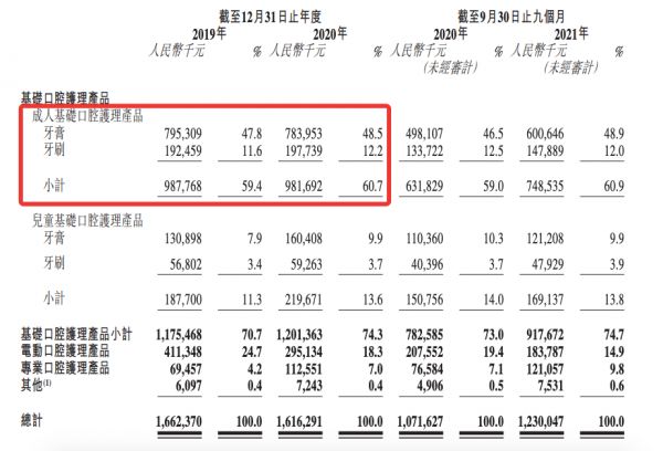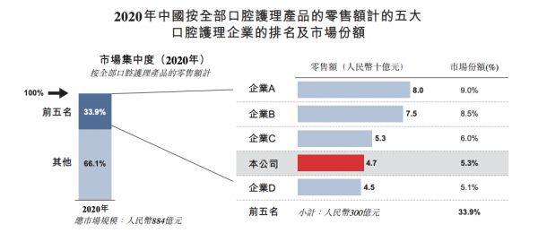 值得一提的是,根据弗若斯特沙利文数据,在中国儿童口腔护理市场中,以2020年零售额计,薇美姿以20.4%的市场份额,位居第一。但在2020年全部口腔护理企业中排名第四,市场份额为5.3%。