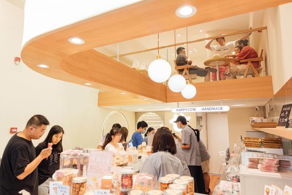 第一,明亮温柔的多功能甜品社交空间。总体装修风格采用干净明朗的颜色,简约时尚,温馨舒适,配备客区提供休息场所。总部指引,门店根据街区变化和潮流趋势优化店内陈设和装修风格。后续的门店与产品包装设计将加入品牌IP“牛牛”,增加“好看”和“好玩”的元素,以此强化目标客群对于品牌的认知。