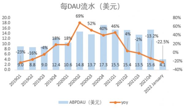 从COVID以来,Roblox经历了巨大的用户、预订和收入增长。但现在,Roblox第四季度的每DAU平均预订量(ABPDAU)为15.57美元,同比下降了13.2%。