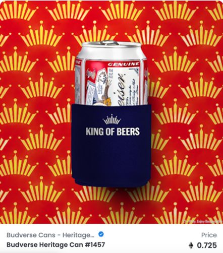 推出时有两种不同的类型——核心传统易拉罐(900 罐,每罐 499 美元)和黄金传统易拉罐(36 罐,每罐 999美元)。每一个NFT都是独一无二的、开启Budverse的钥匙,可以解锁百威历史上的存档照片、广告和设计。