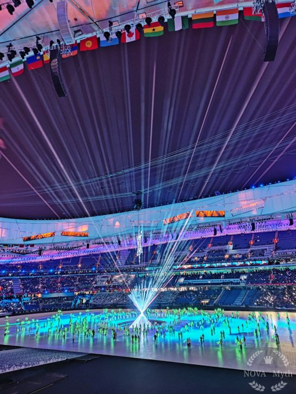 闭幕式上,总导演借用别具东方韵味的“折柳送别”典故,期待所有来到北京的朋友们,带上这一条柳枝,带走中国人民的友谊。与此同时一组由“真激光”光束组成的参天大树,生机盎然,矗立在舞台中央。它穿过雪花火炬台直达天空,代表人类最朴素最真挚的情感:送别、怀念、铭记和期待。