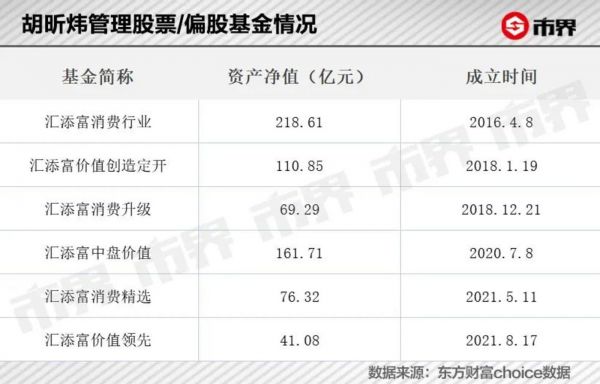2020年后半年开始汇添富基金为胡昕炜量身打造了三只新基金:汇添富中盘价值、汇添富消费精选两年持有和汇添富价值领先。三只基金分别于2020年7月、2021年5月,2021年8月发行。