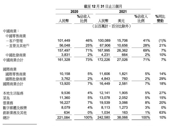 整体上看,零售业务之外,本地生活服务增长尚佳,同比增长27%,云服务业务同比增长20%,相比此前的增速,已经放缓。这其中有海外客户的影响。