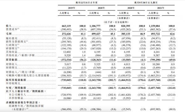 招股书显示,2019年keep亏损7.35亿元,这一数字到了2020年扩大至22亿元,在截至2021年9月30日止的九个月里亏损了25亿元。2021年前三季度,非国际财务报告准则计量下,公司在2021年前三季度经调整亏损净额从2019年的3.66亿元缩小至2020年的1.06亿元。换言之,三年累计至少亏掉了50亿元。