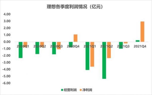 首先,从经营层面来说,理想2021年还是亏损的,金额是10亿元。这主要是因为一季度和二季度亏的太多,加起来就占了9.4亿元。