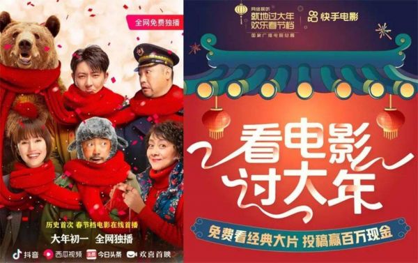 彼时字节跳动以西瓜视频为主要的长视频发力平台,凭借以6.3亿达成与欢喜传媒的战略合作并上线《囧妈》闻名全网;快手同样经历了版权囤积的过程,去年春节期间#看电影过大年#活动就包括“快手请你看电影”专区内的百部热门电影和若干短剧达人制作的长内容。