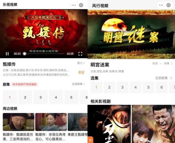 值得注意的是,这些内容并不全部来自快手的版权合作,包括《甄嬛传》《太子妃升职记》等内容点开后会发现跳转到了风行、乐视等小程序页面,这无疑是规避版权购买重体量的一种新玩法。