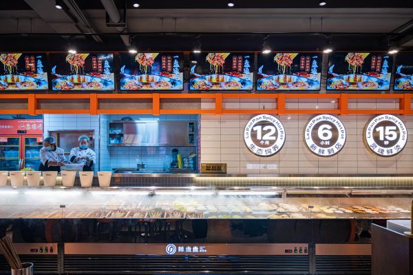 辣盘盘首家门店在2021年开出,针对写字楼、商场、社区等场景,辣盘盘分别推出了主力店、档口店等不同面积门店形态。据悉,其中20平米档口店日销可达8000元。