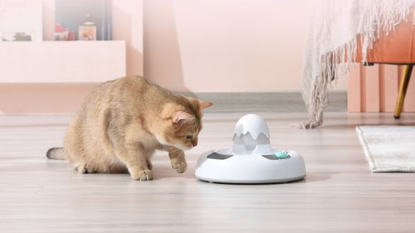 美味虫虫:整个“捕猎游戏机”由智能小虫、零食仓、虫穴构成,兼有自动逗猫功能。当猫咪“捕获”小虫后,游戏机会随机落下零食,让猫咪获得捕猎正向反馈。值得一说的是,这是一款半互动的游戏机,游戏启动5——10分钟后会自动停止,需主人重新启动和添食,训练猫咪自律的同时,增进与主人的正向关联。