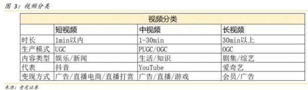 视频按照长度分为三类,1分钟以内的是短视频,1-30分钟的中视频,30分钟以上的是长视频。