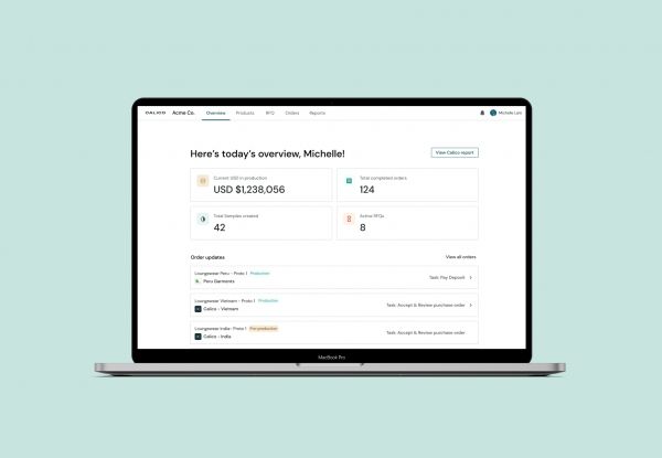 Chan 提出的解决方案旨在帮助品牌管理其从设计开始到制造的供应链全程,Chan 介绍称,“您可以将自己的包裹带上飞机,并拥有一个专门的工作空间,以便协同工作,从而将一系列产品推向市场。另外,我们自己也拥有一个由全球工厂供应网络,随时为客户提供服务。” 据了解,这些工厂与世界上一些时尚品牌合作,为小制造商提供与这些大品牌相同的访问权限。另外,客户还可以按地区、可持续性等筛选工厂,平台将为其匹配满足要求的设施。客户可以从各个工厂获得投标和报价,以获得最优惠的价格,当一切准备就绪时就立即生产,客户在「Calico」内部即可管理整个过程。