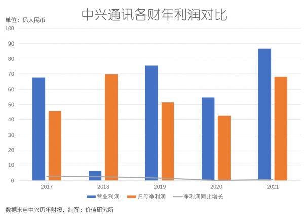 一方面,其净利润持续增长,创下历史最佳纪录。最新财报显示,2021财年中兴归母净利润68.1亿,同比增长近60%;扣非归母净利润则录得33.1亿,同比增幅达到惊人的219.2%。