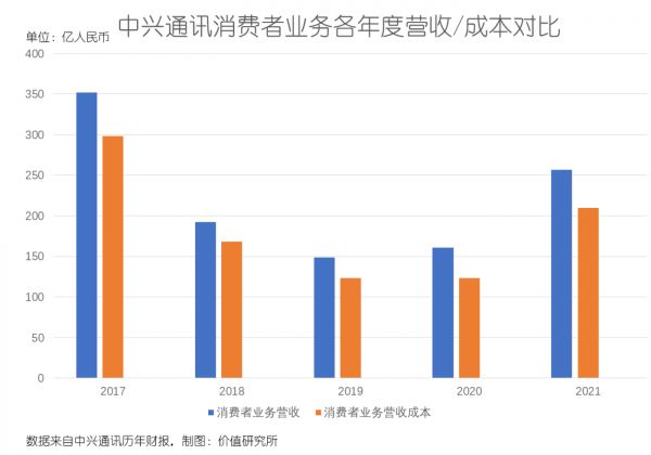 数据显示,中兴在消费者业务上的成本增长最快,同比增幅达到70.41%,远超59.22%的营收增长。在供应链趋紧以及上下游原材料成本上涨的双重挑战下,中兴未来一段时间的成本压力恐怕还会继续上升。