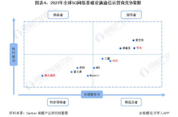 根据Gartner发布的报告,华为、爱立信和诺基亚是目前全球5G网络基建领域实力最强的三家企业,无论执行能力还是市场竞争力都遥遥领先。而中兴在Gartner的报告中被描述为竞争力不俗,但执行力欠奉。
