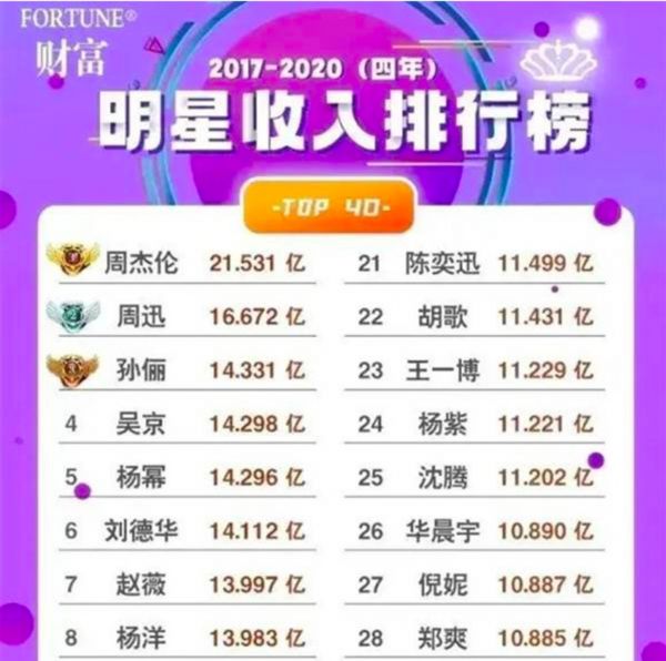此前《财富》杂志列出的2017-2020年中港台《明星收入排行榜》,王一博四年收入累计达到了11.2亿元。