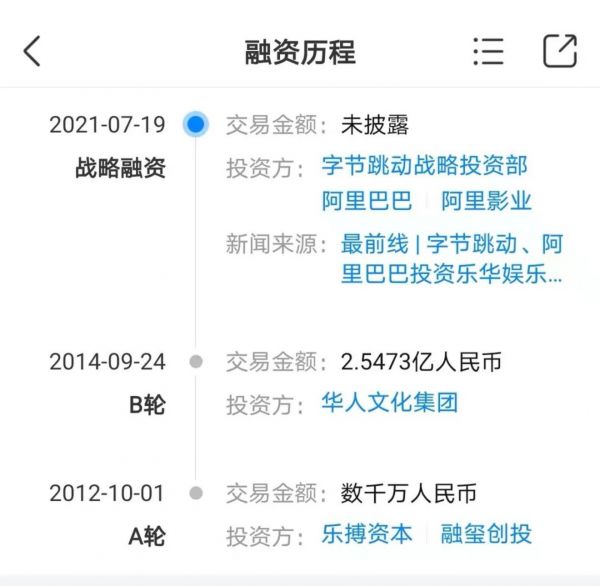 这个期间,乐华已经部署将进三轮的融资计划,确保资金上的充足。早在2012年10月,乐华举办融资发布会,当时就获得乐博资本、融玺创投数千万人民币的投资。随后,融资的企业规模越来越大,招股书提到的主要投资者华人文化、字节跳动、阿里影业,都纷纷入局。