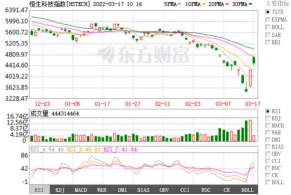 先从资金面和技术面来看,北京时间3月16日,A股和港股大涨,尤其是连续深跌数日的恒生科技指数涨770.97点、收报4243.39点,涨幅22.2%创下单日最大升幅。我们都知道,许多中国科技公司在美股和港股两地上市,而一般情况下两地上市的股票市值不会出现太大的偏差,这就意味着,在经历港股大涨后,3月16日晚间,在美股上市的中概股市值几乎必然会拉升、向港股市值靠近。