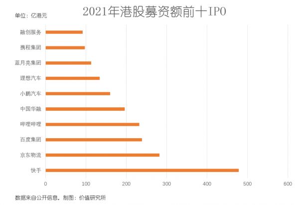 而根据官方数据,截止去年年底港股共有467只中资个股,去年募资金额前十的大型IPO中,回港中概股占据半壁江山,包括百度、哔哩哔哩、小鹏、理想以及携程,募资近240亿港元的百度更是跻身前三。