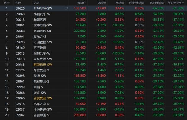 统计显示,过去一年有超过100家中概股市值缩水80%以上;过去60个交易日有78只在美上市中概股跌幅超过50%,逸仙电商、雾芯科技、滴滴、金山云、知乎、哔哩哔哩、小鹏汽车和拼多多均榜上有名。