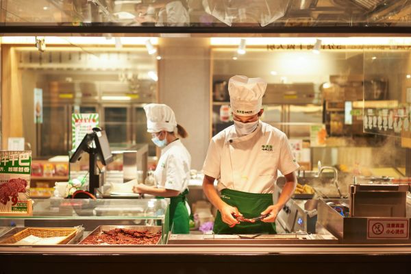 最初,牛大吉1.0版门店主要以售卖生鲜牛肉为主,后来吴海金发现,对很多年轻消费者而言,从采购到烹饪牛肉等众多环节耗费较多时间和精力,负担重、难度大,“除了牛肉食材,我们是不是也可以把牛肉做好?”。基于这个思考,牛大吉决定将门店从1.0形态升级到2.0,在鲜牛肉档口基础上,又增设了烘焙、烤炉、卤煮等设备,提供牛肉相关的熟食饭菜。