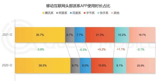 QuestMobile2021大报告中各家时长份额